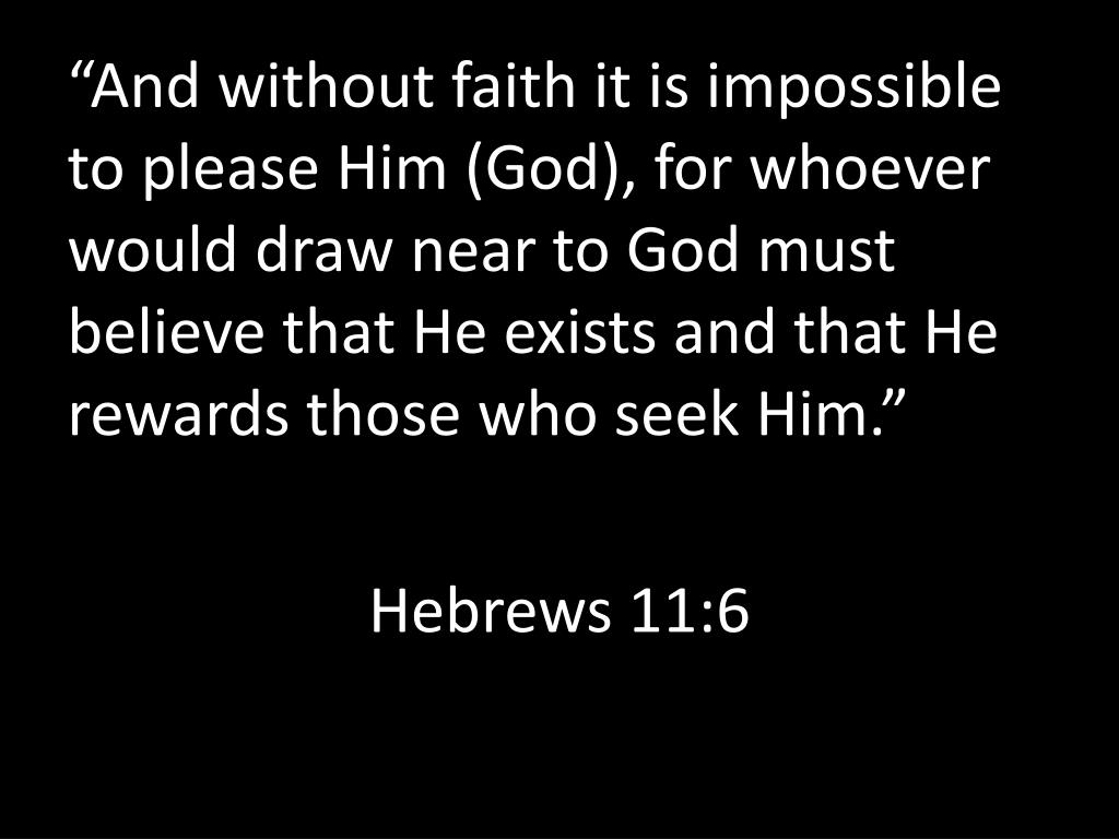 “And without faith it is impossible to please Him (God), for whoever would draw near to God must believe that He exists and that He rewards those who seek Him.” Hebrews 11:6