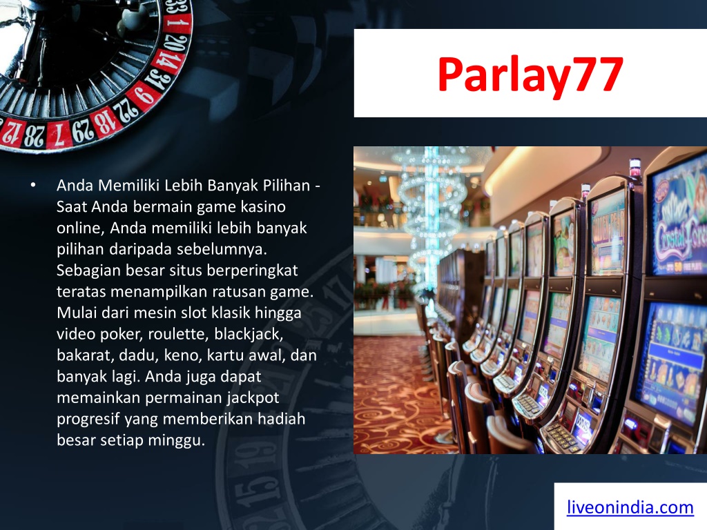 Parlay77 • Anda Memiliki Lebih Banyak Pilihan - Saat Anda bermain game kasino online, Anda memiliki lebih banyak pilihan daripada sebelumnya. Sebagian besar situs berperingkat teratas menampilkan ratusan game. Mulai dari mesin slot klasik hingga video poker, roulette, blackjack, bakarat, dadu, keno, kartu awal, dan banyak lagi. Anda juga dapat memainkan permainan jackpot progresif yang memberikan hadiah besar setiap minggu. liveonindia.com
