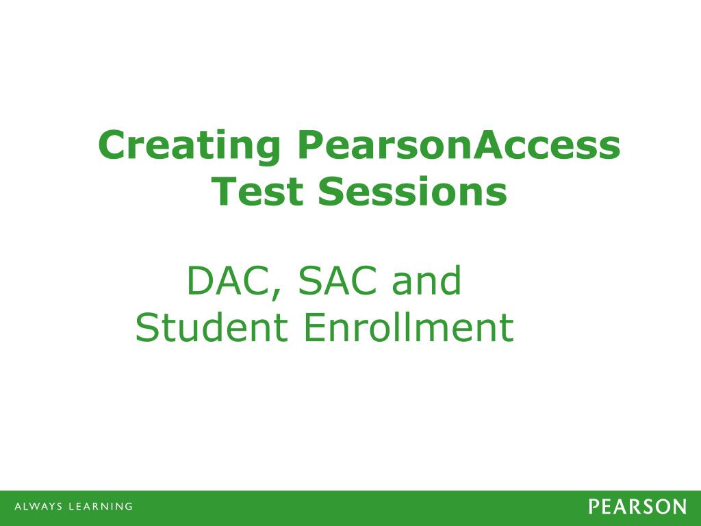 Creating PearsonAccess Test Sessions DAC, SAC and Student Enrollment