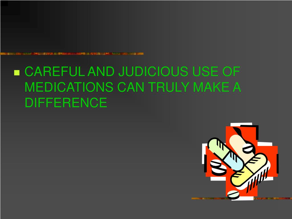 CAREFUL AND JUDICIOUS USE OF MEDICATIONS CAN TRULY MAKE A DIFFERENCE