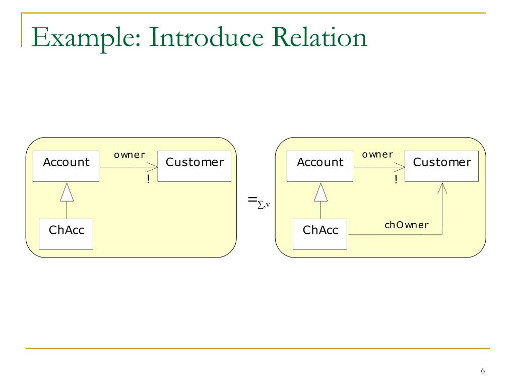 Example: Introduce a Generalization ∑= {ChAcc, SavAcc} v = {(Account → ChAcc+SavAcc)}
