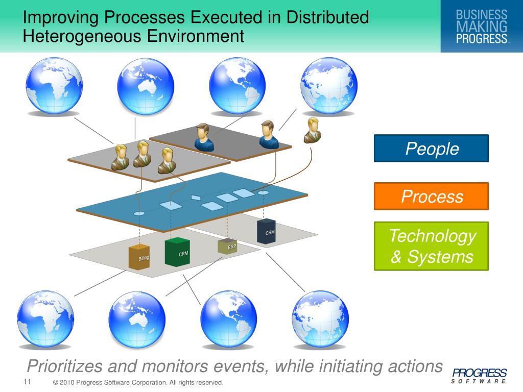 Improving Processes Executed in Distributed Heterogeneous Environment People Process Technology & Systems Prioritizes and monitors events, while initiating actions