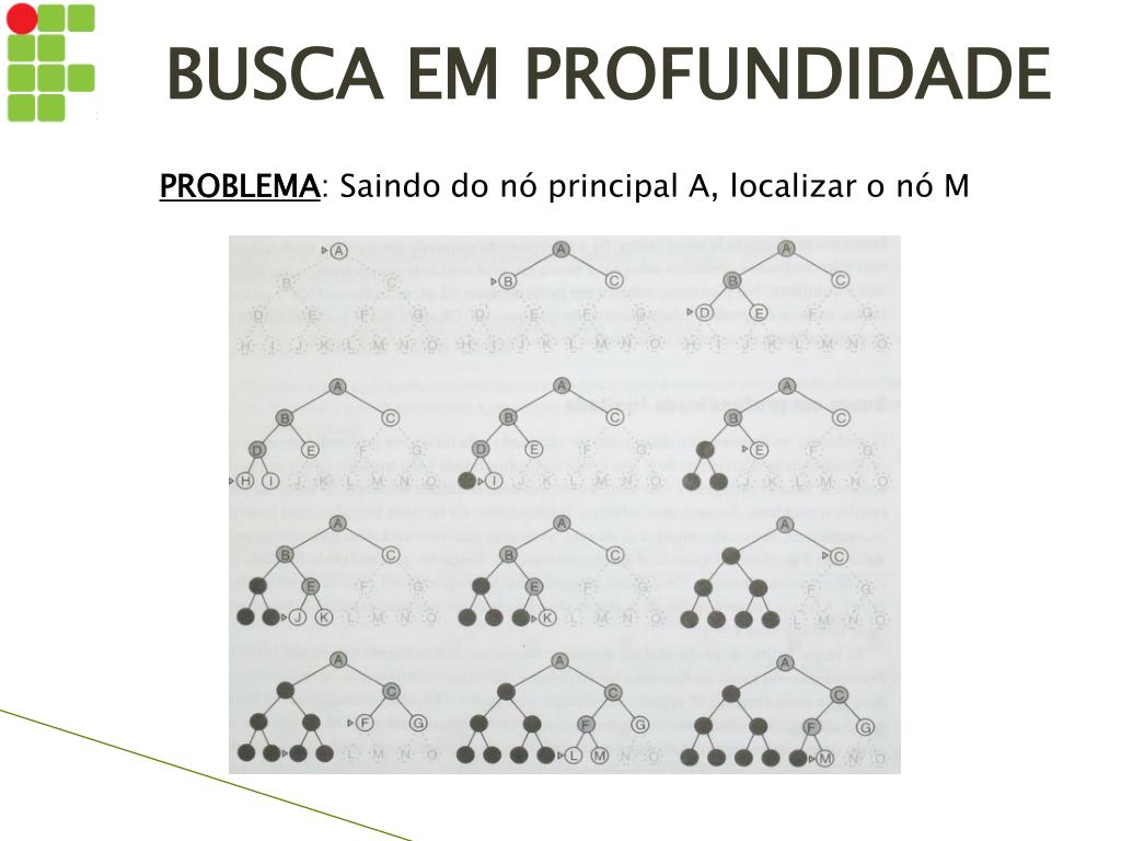 BUSCA EM PROFUNDIDADE PROBLEMA: Saindo do nó principal A, localizar o nó M