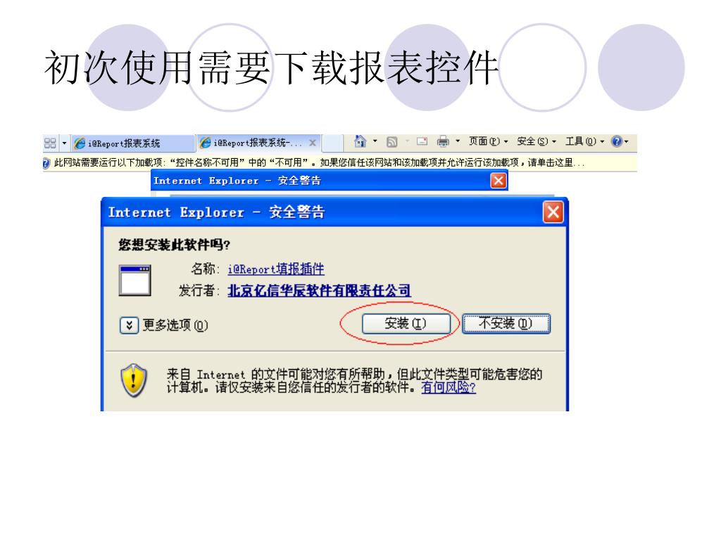 卫生部网络直报系统. 使用说明. 工作前准备. 上报网址: 121.28.24.114/webPage ( 注意 :P 是大写,其他字母小写 ) 或: http://121.28.24.114:8080/irpt/i/oem/wsb/login.jsp 用户名称:各单位由卫生局签发的医疗机构许可证前 15 位 口令:初始口令为 123456 ,必须自行修改为其他口令. 系统其他要求. 必须使用微软提供的 internet explorer 6 -8 均可; 最好是网通的宽带上网,否则速度会非常慢; 可能与瑞星杀毒软件有冲突;. 调整浏览器安全级别. 系统界面.