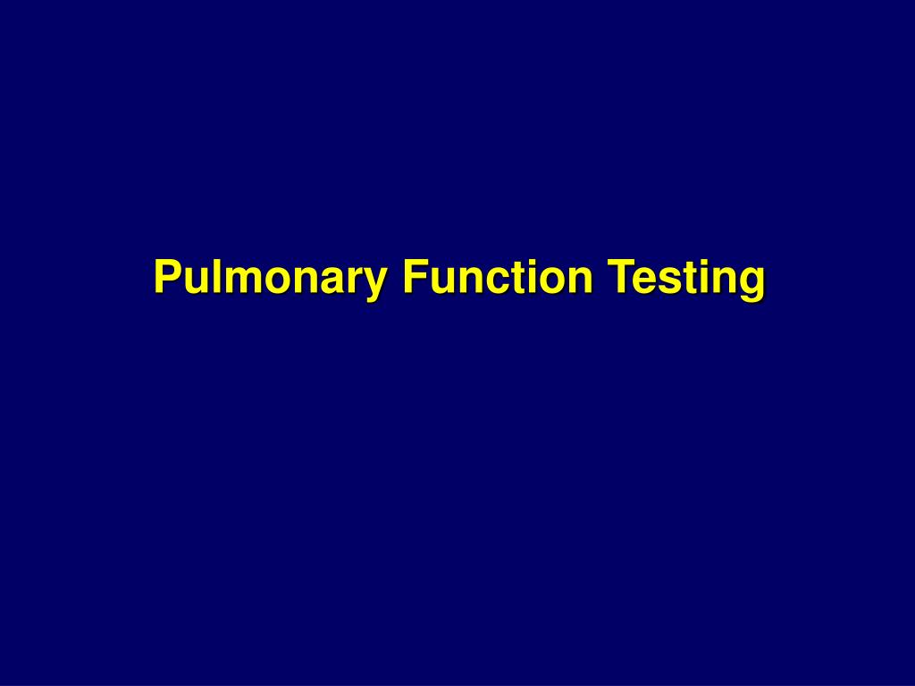 Pulmonary Function Testing • Establish baseline lung function and evaluate the presence or absence of lung disease • Evaluate symptoms of dyspnoea • Evaluate if the lung disease is primarily an obstructive, restrictive or mixed ventilatory defect • Quantify the respiratory impairment and monitor the extent of known disease on lung function • Monitor effects of therapies used to treat respiratory disease