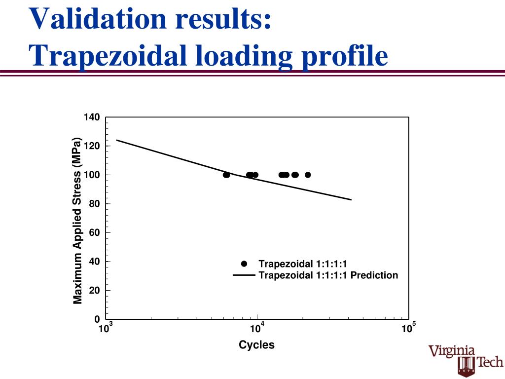 1 S r 1 S a 2 S a Remaining Strength Predictions: • Track remaining strength during the time-dependent process • Define a scalar failure function based upon tensor strength and stresses; use this failure function for calculations • May include the effects of changing loading conditions • May be directly validated experimentally, unlike Miner’s rule Residual Strength Sult Stress or Strength Failure Miner’s rule Cycles Failure occurs when residual strength equals applied load
