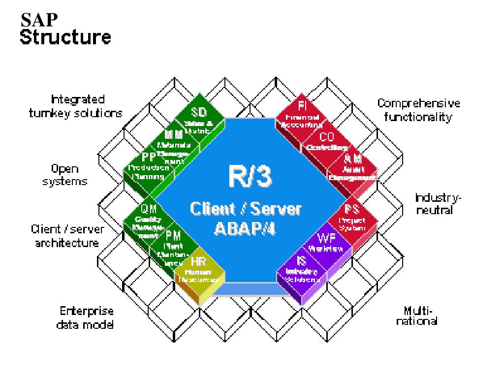SAP R/3 Applications Manufacturing & Logistics • Materials management (MM) • Plant maintenance (PM) • Quality management (QM) • Production planning & control (PP) • Project management system Sales & Distribution • Prospect & customer management • Sales order management • Configuration management • Distribution • Export controls • Shipping and transportation management (SD) • Billing, invoicing, and rebate processing