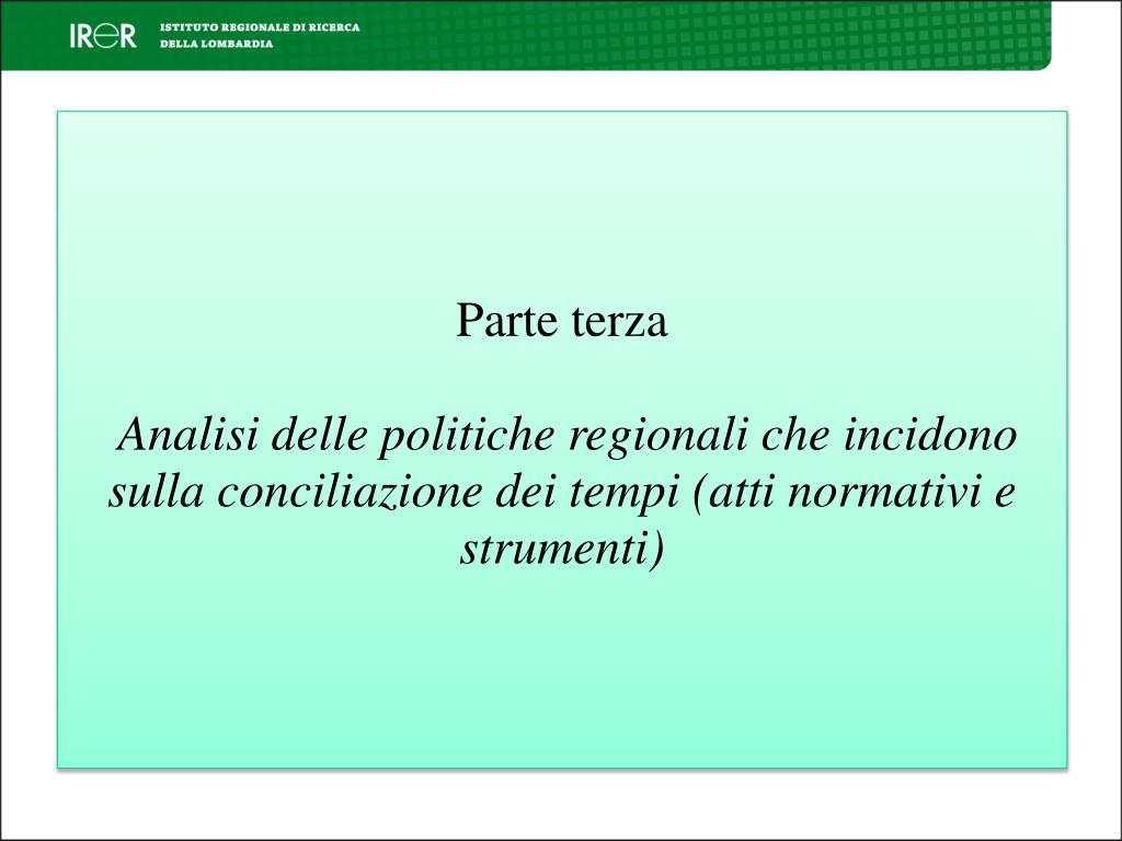 Parte terza Analisi delle politiche regionali che incidono sulla conciliazione dei tempi (atti normativi e strumenti)