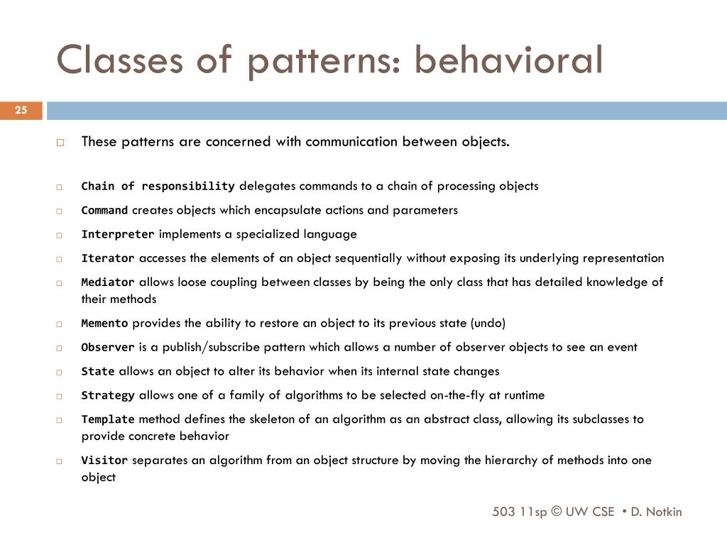 CSE503:Software EngineeringDesign Patterns David Notkin Spring 2011