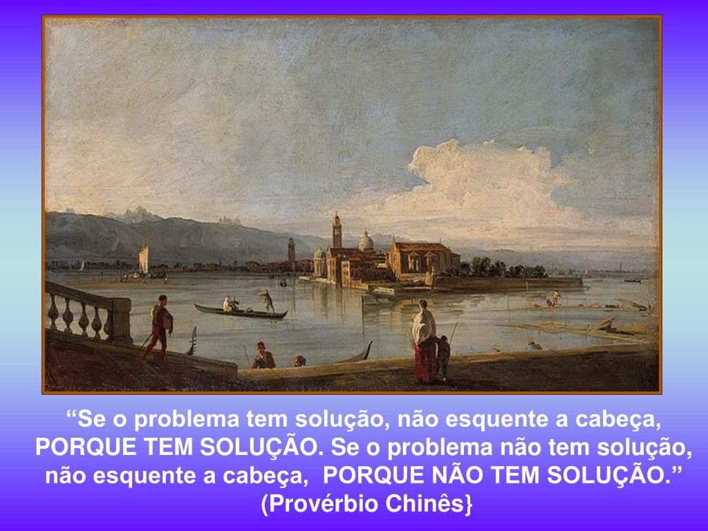 “Se o problema tem solução, não esquente a cabeça, PORQUE TEM SOLUÇÃO. Se o problema não tem solução, não esquente a cabeça, PORQUE NÃO TEM SOLUÇÃO.” (Provérbio Chinês}