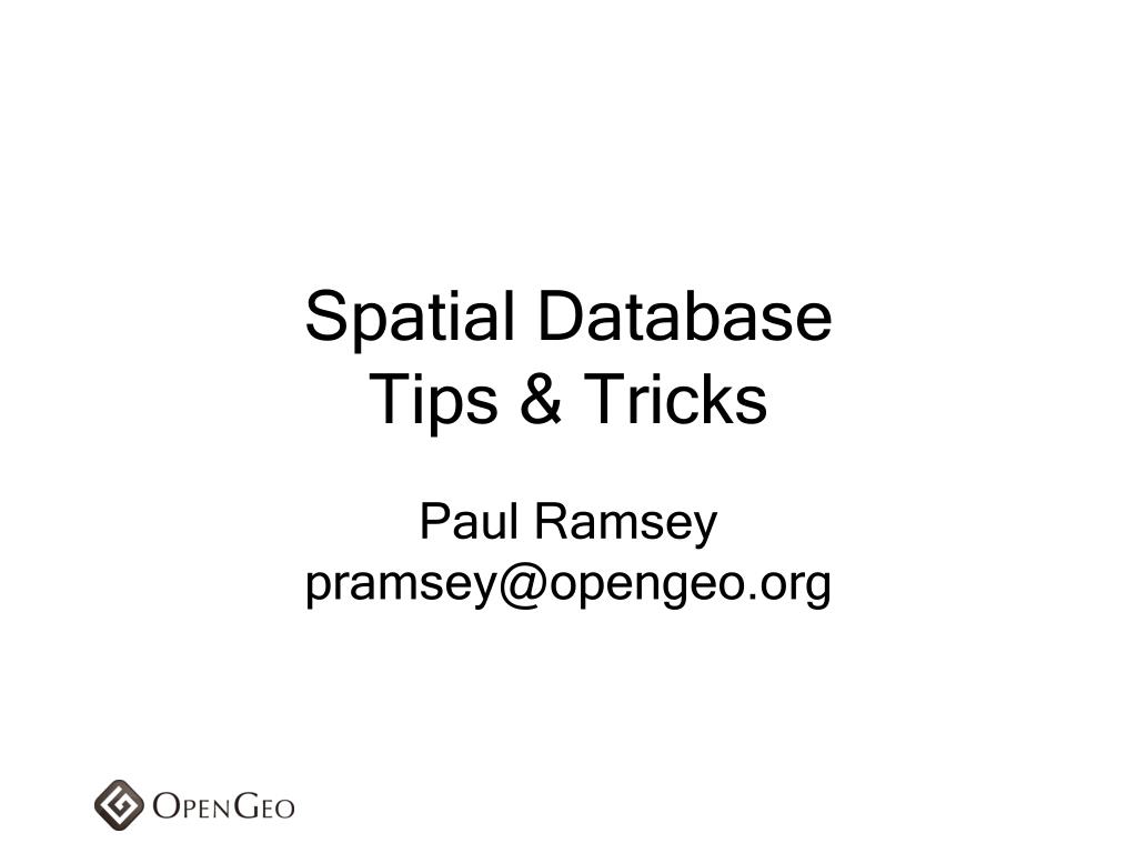 Spatial DatabaseTips & Tricks Paul Ramseypramsey@opengeo.org