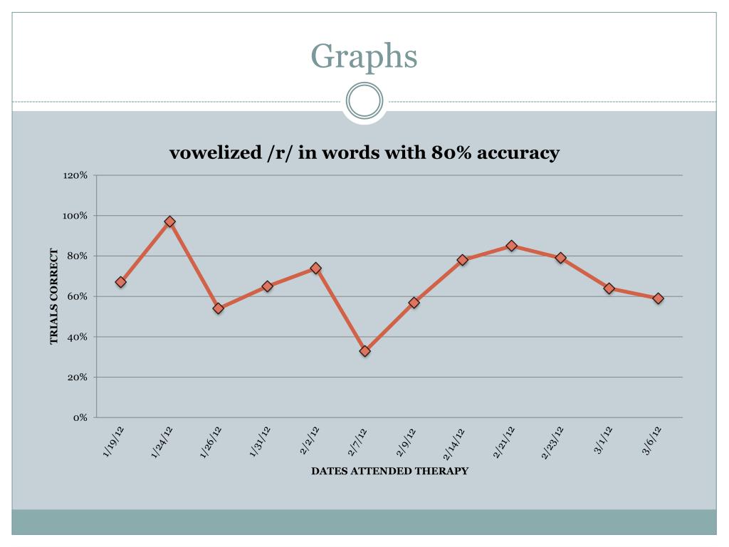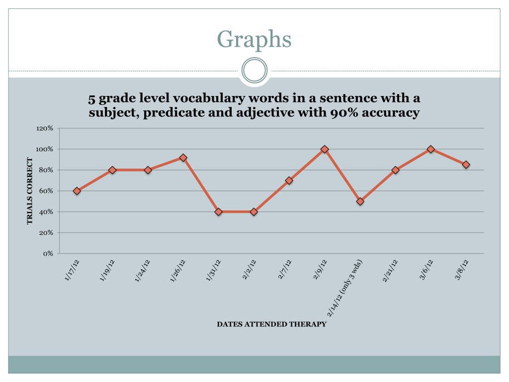 Procedures in Therapy • AB will participate in age-appropriate activities to elicit expressive language skills through pointing, gesturing and imitating sounds. The activities used will be goal-centered to allow for data to be collected. • Therapy considerations: • Games not regularly used • AB exhibits behavior and attention issues