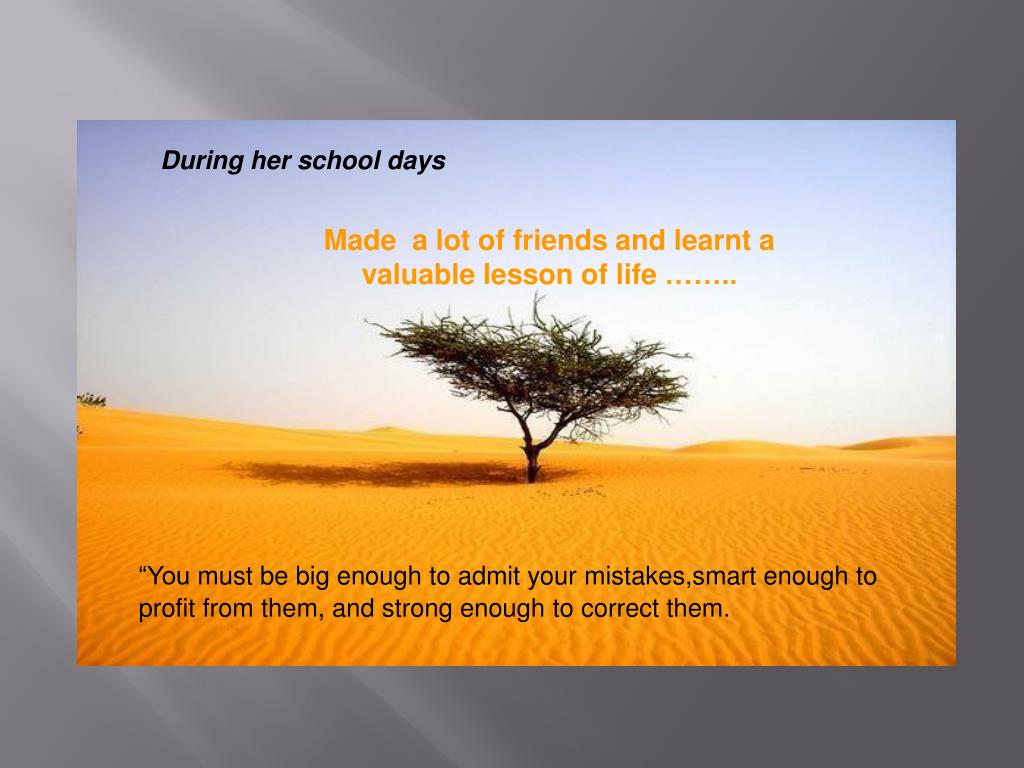 During her school days Made a lot of friends and learnt a valuable lesson of life…….. “You must be big enough to admit your mistakes,smart enough to profit from them, and strong enough to correct them.