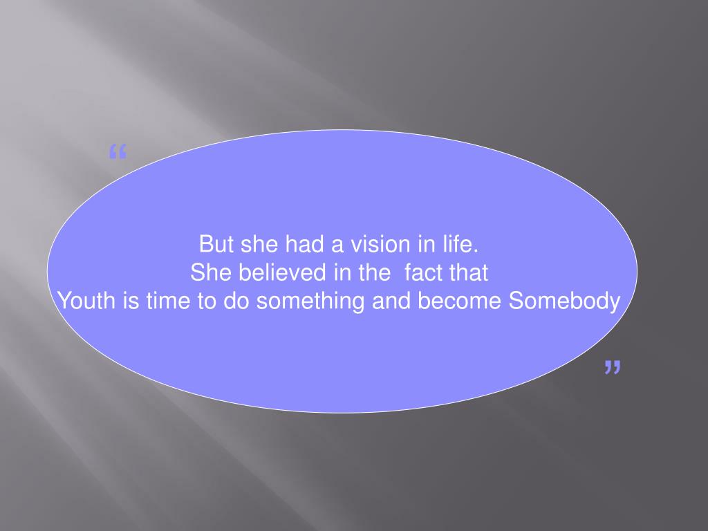 “ But she had a vision in life. She believed in the fact that Youth is time to do something and become Somebody ”