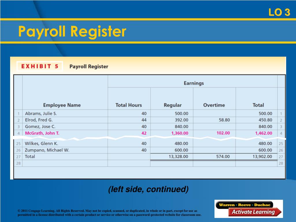 LO 3 Payroll Register (left side, continued)