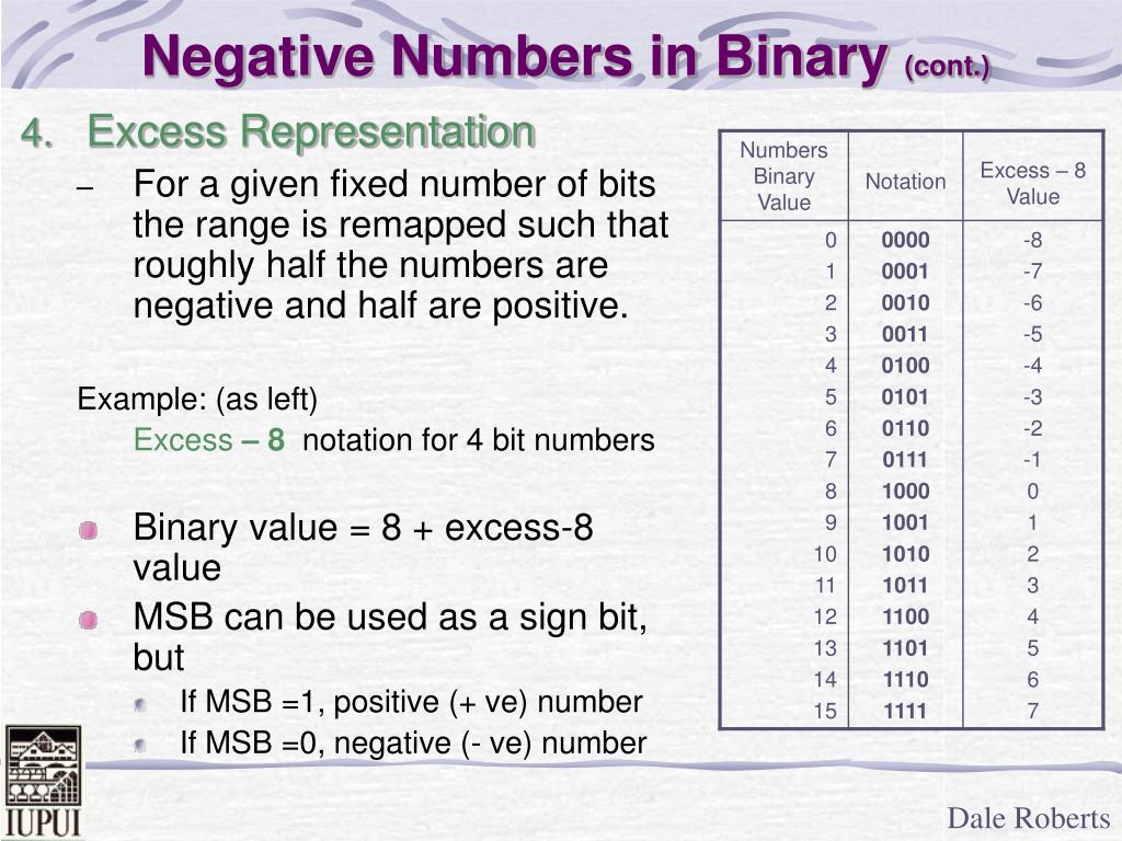 Department of Computer and Information Science, School of Science, IUPUI. CSCI 230. Information Representation: Negative and Floating Point Representation . Dale Roberts, Lecturer IUPUI droberts@cs.iupui.edu. Negative Numbers in Binary.