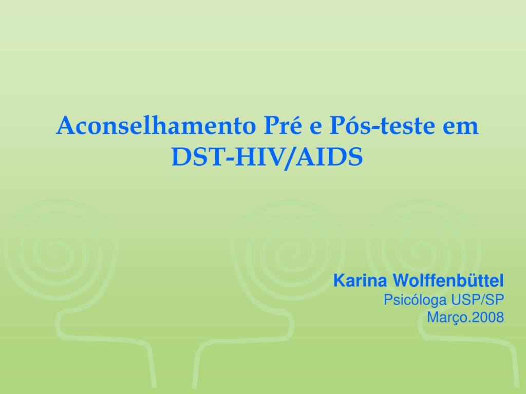 Aconselhamento Pré e Pós-teste em DST-HIV/AIDS Karina Wolffenbüttel Psicóloga USP/SP Março.2008
