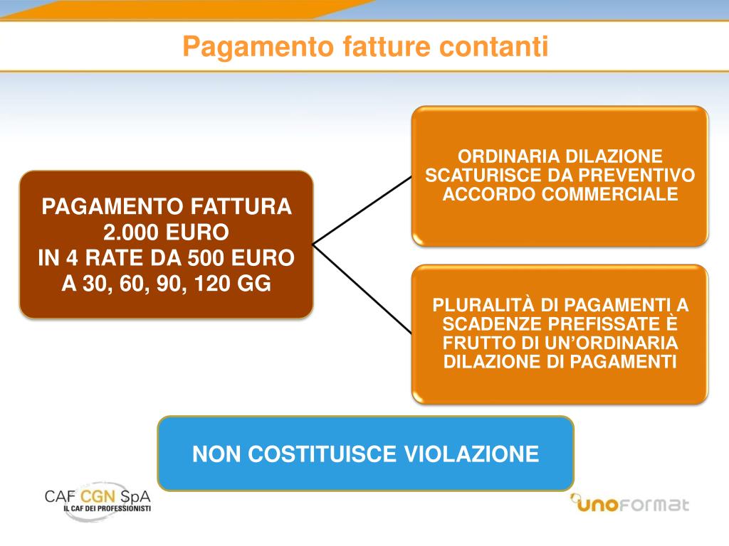 Pagamento fatture contanti NON COSTITUISCE VIOLAZIONE