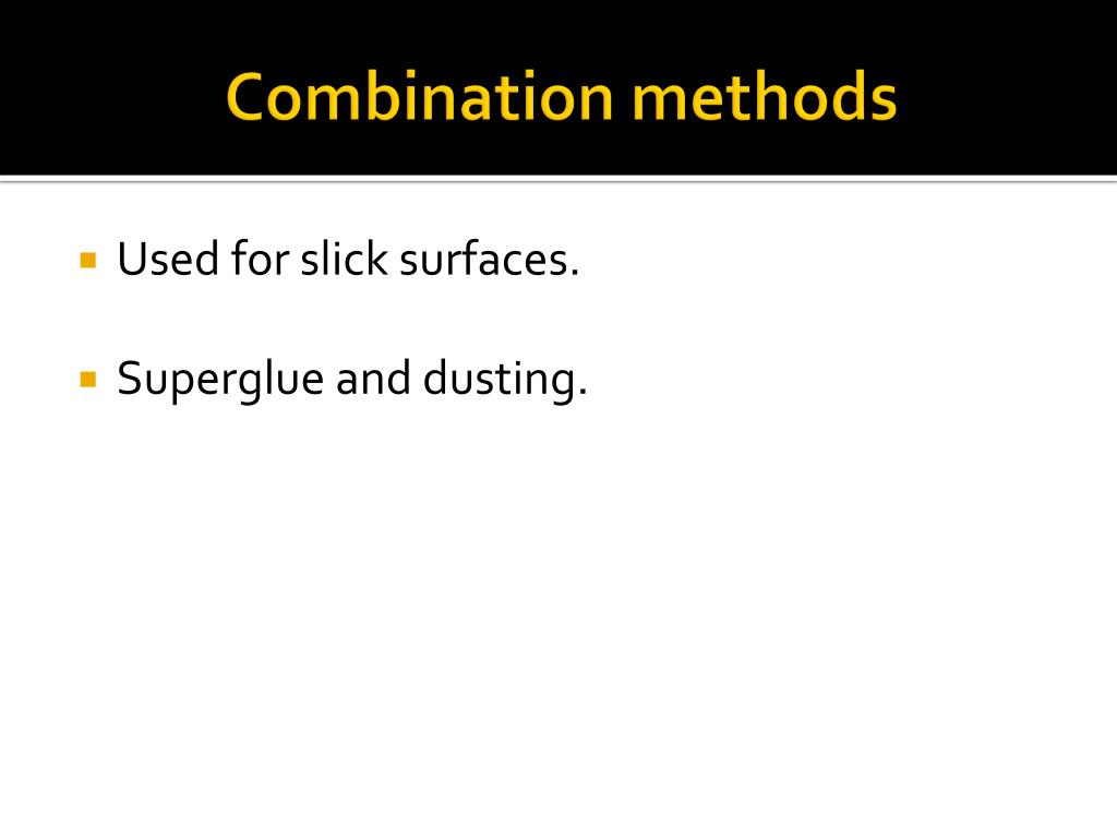 Combination methods • Used for slick surfaces. • Superglue and dusting.