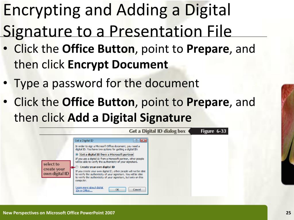 Encrypting and Adding a Digital Signature to a Presentation File New Perspectives on Microsoft Office PowerPoint 2007