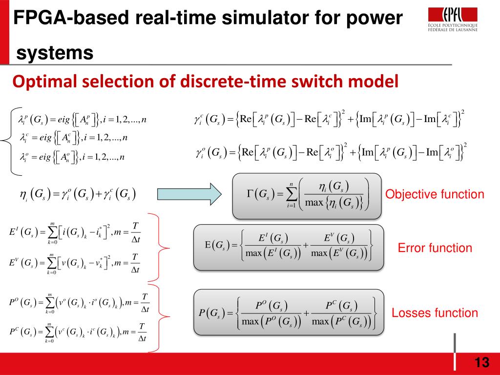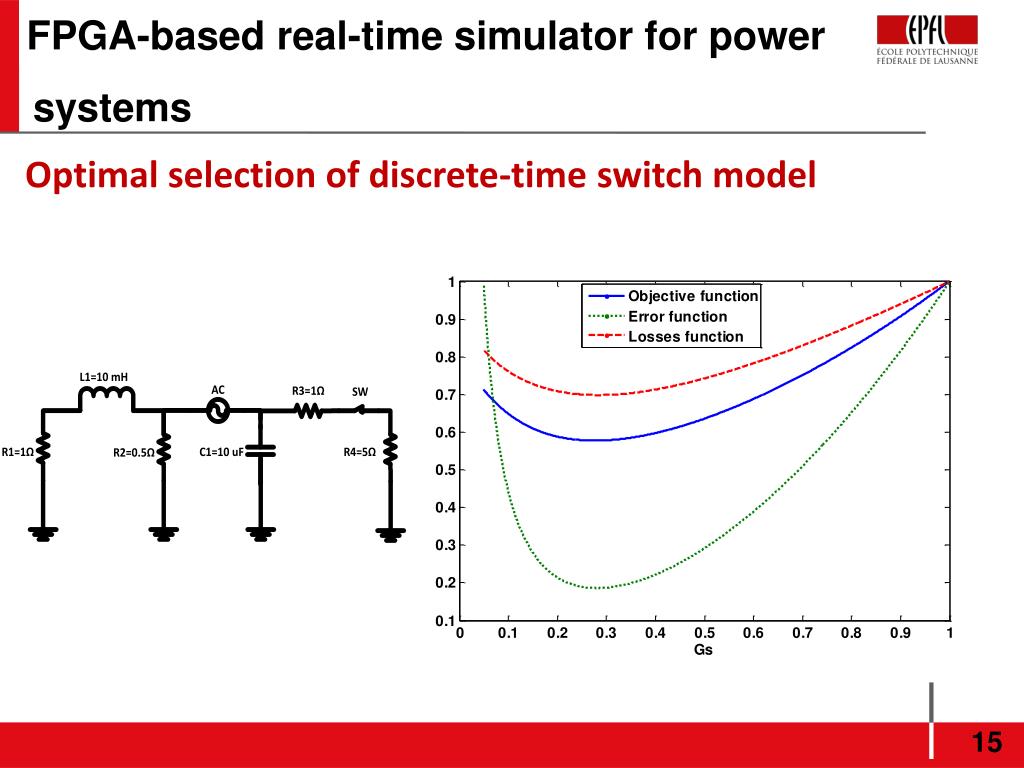 FPGA-based real-time simulator for power systems • Optimal selection of discrete-time switch model Objective function Error function Losses function 13
