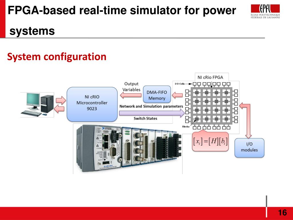 FPGA-based real-time simulator for power systems • 1- Network solution method • Modified nodal analysis (MNA) • State-space method • 2- Numerical integration method • Trapezoidal method • Euler methods • 3- Network components model • Lumped elements (R,L,C,…) • Transmission lines 9