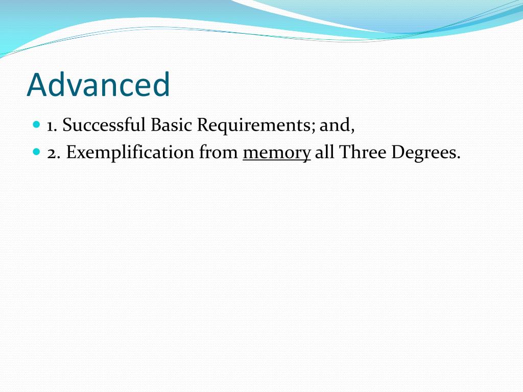 Advanced • 1. Successful Basic Requirements; and, • 2. Exemplification from memory all Three Degrees.