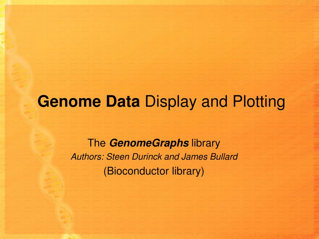 Genome Data Display and Plotting The GenomeGraphs library Authors: Steen Durinck and James Bullard (Bioconductor library)