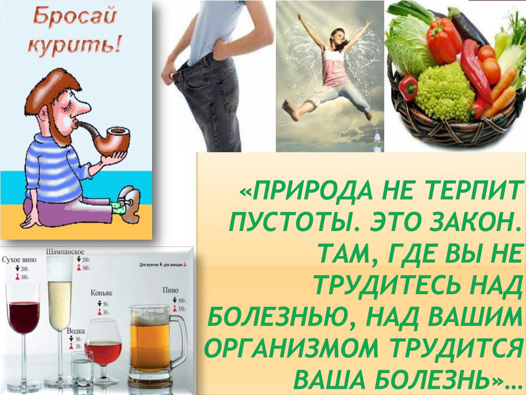 «Природа не терпит пустоты. Это закон. Там, где Вы не трудитесь над болезнью, над Вашим организмом трудится Ваша болезнь»…