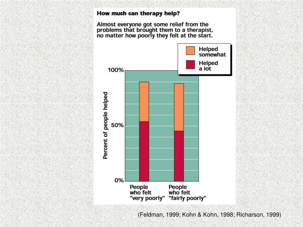 Evaluating Psychotherapy: Does Therapy Work? (Feldman, 1999; Kohn & Kohn, 1998; Richarson, 1999)