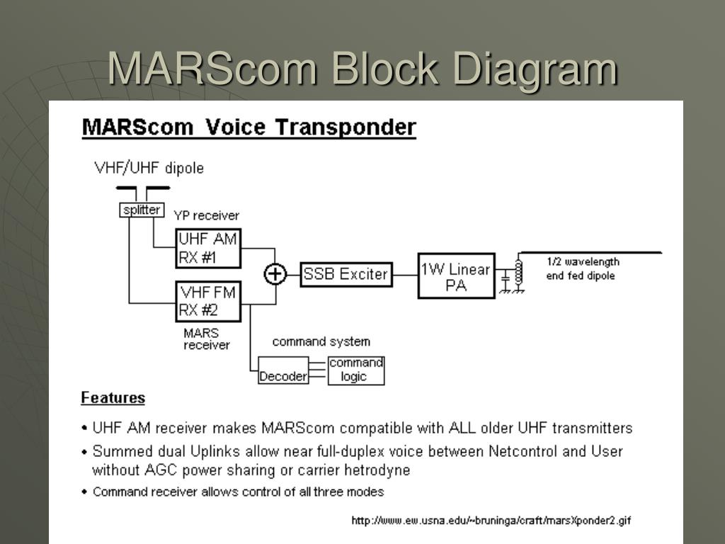 Military Affiliated Radio System • The Mission of the MARS system is to: • Provide auxiliary communications for military, federal and local disaster management off icials during periods of emergency or while conducting drills…. • Assist in effecting normal communications under emergency conditions. • Handle morale and quasi-official message and voice communications traffic for members of the Armed Forces and authorized U.S. Government civilian personnel • Provide, during daily routine operations, a method of exchanging MARSGRAMS and … contacts between service personnel and their families back home.