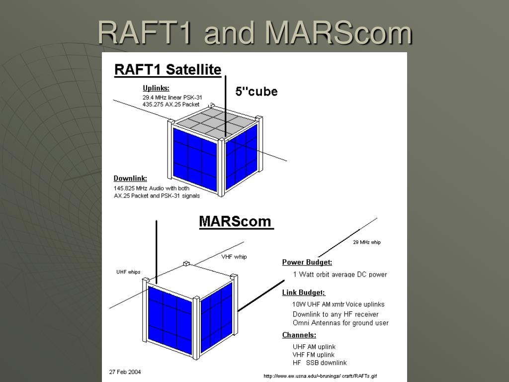 Mission Statement The mission of CUBESAT-RAFT is to: • provide the Navy Space Surveillance, or NAVSPASUR, radar fence with a means to determine the bounds of a constellation of CUBESATS otherwise undetectable to the radar fence • to enable NAVSPASUR to independently calibrate their transmit and receive beams using signals from CUBESAT-RAFT. - This must be accomplished with two CUBESATS, one that will actively transmit and receive, and one with a passively augmented radar cross-section. Additionally, CUBESAT-RAFT will provide experimental communications transponders for the Navy Military Affiliate Radio System, the United States Naval Academy’s Yard Patrol crafts, and the Amateur Satellite Service.