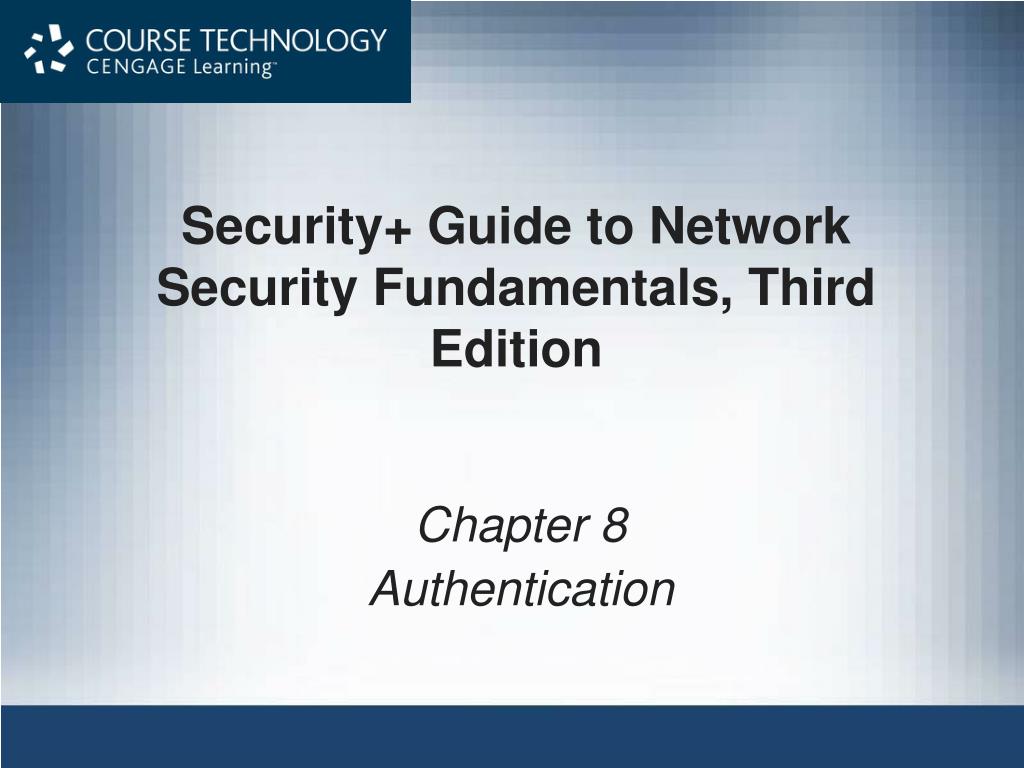 Security+ Guide to Network Security Fundamentals, Third Edition. Chapter 8 Authentication. Objectives. Define authentication Describe the different types of authentication credentials List and explain the authentication models. Objectives (continued). Define authentication servers