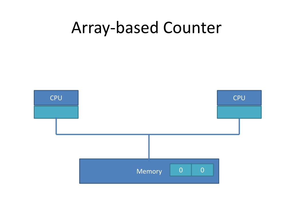 Array-based Counter Read Counter CPU 2 CPU CPU 1 1 Add All Counters (1 + 1) Memory 1 1