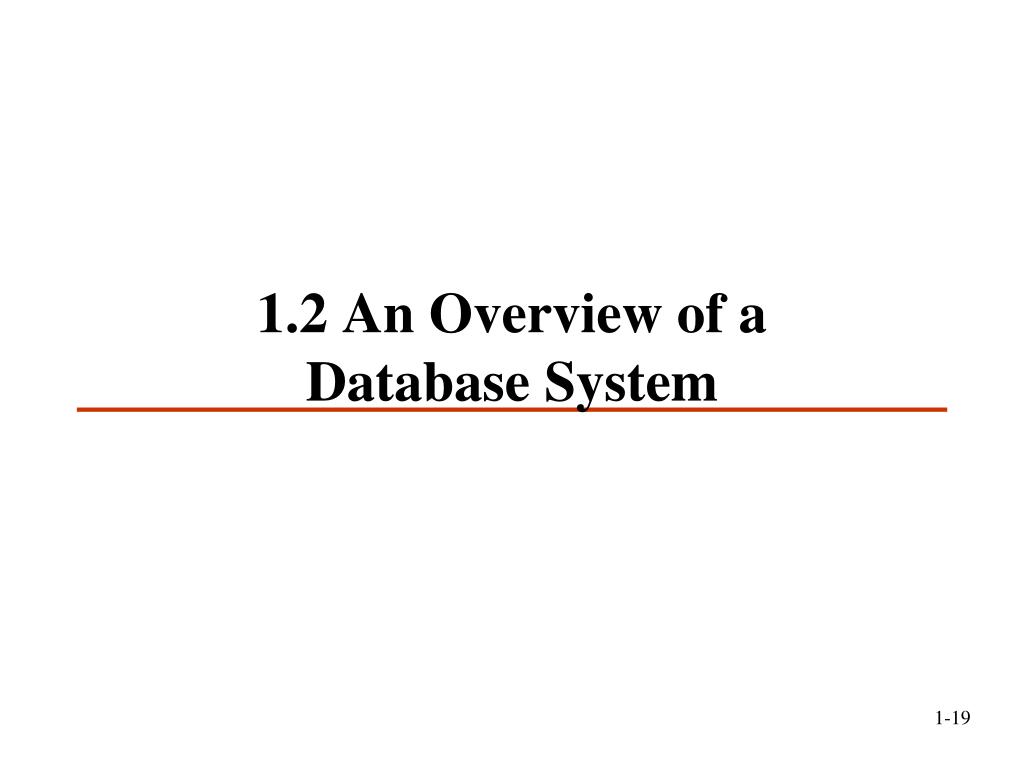 Outline of Unit 1 1.1 Information Systems 1.2 An Overview of a Database System 1.3 Why Database Systems? 1.4 An Architecture for a Database System 1.5 Data Models 1.6 Establish/Design a Database System 1.7 Extending Database Technology 1.8 Discussion and Remarks