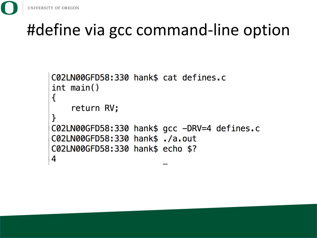 Preprocessor Phases • Resolve #includes • (we understand #include phase already) • Conditional compilation • #define / #ifdef / #ifndef / #endif • Macro replacement • Special macros • __FILE__, __LINE__, __FUNCTION__