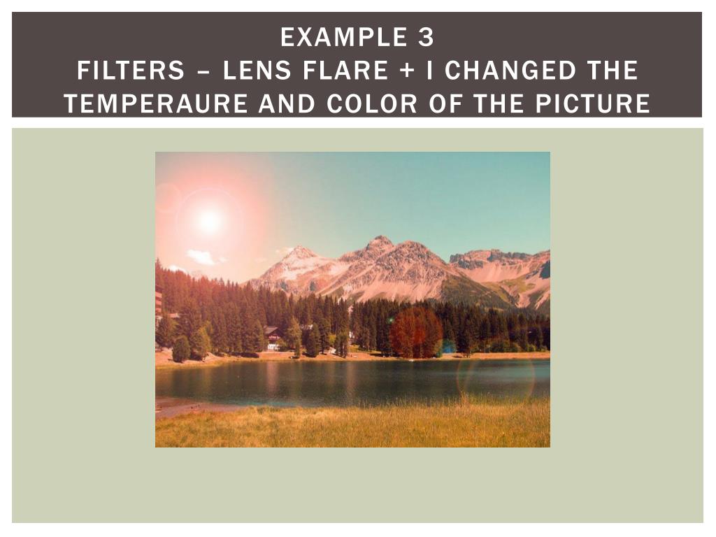 Example 3filters – lensflare + i changed the temperaure and color of the picture