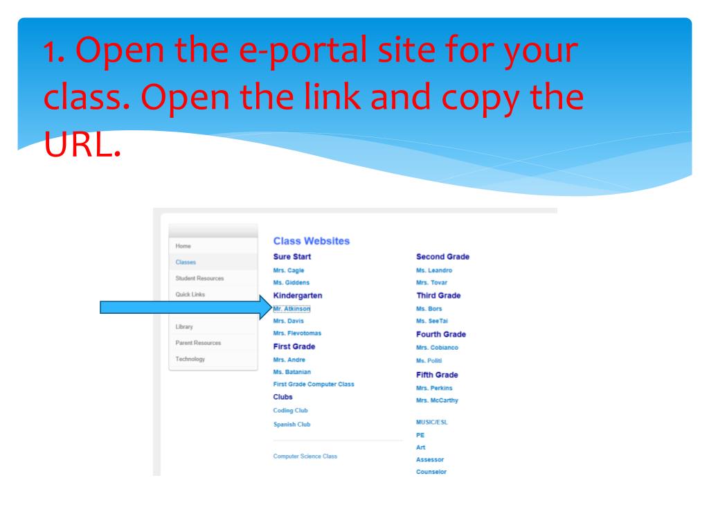 1. Open the e-portal site for your class. Open the link and copy the URL.
