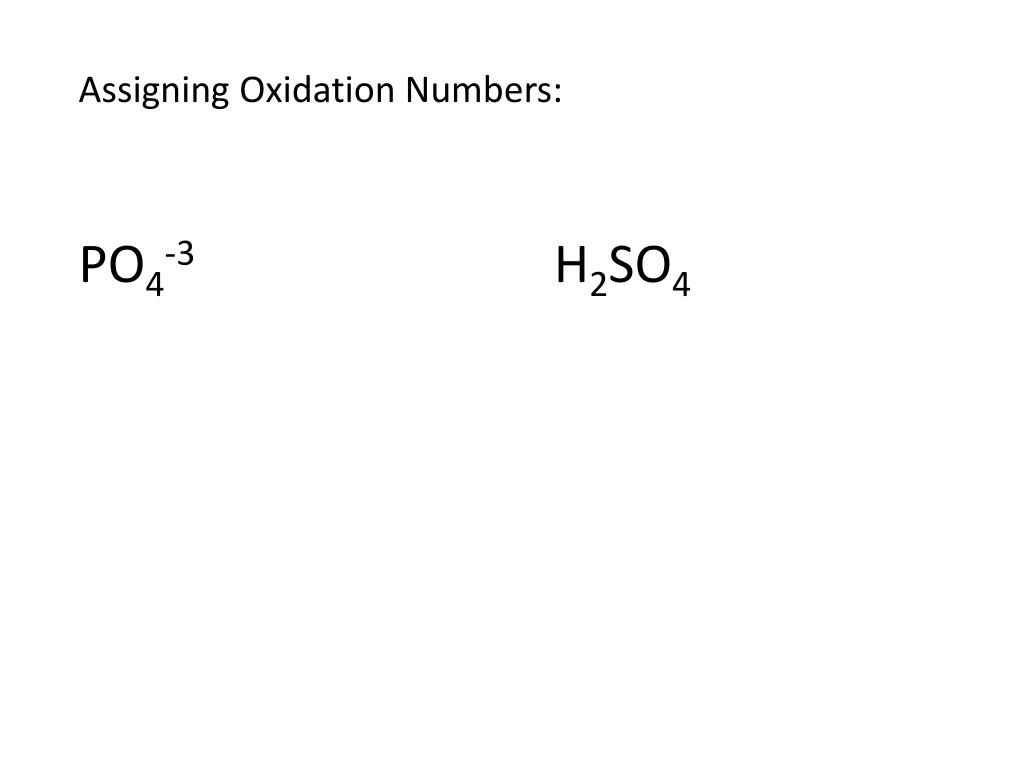 Assigning Oxidation Numbers: PO4-3 H2SO4