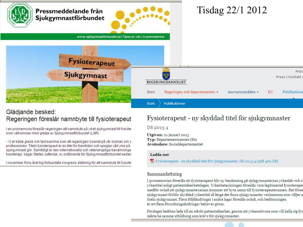 Årsmöte Östergötland. 2013-02-26 Stefan Jutterdal Förbundsordförande Legitimerade Sjukgymnasters Riksförbund www.sjukgymnastforbundet.se www.facebook.com/sjukgymnastforbundet www.twitter.com/StefanJutterdal stefan.jutterdal@lsr.se. US i Linköping bäst i Sverige av alla universitetssjukhus.