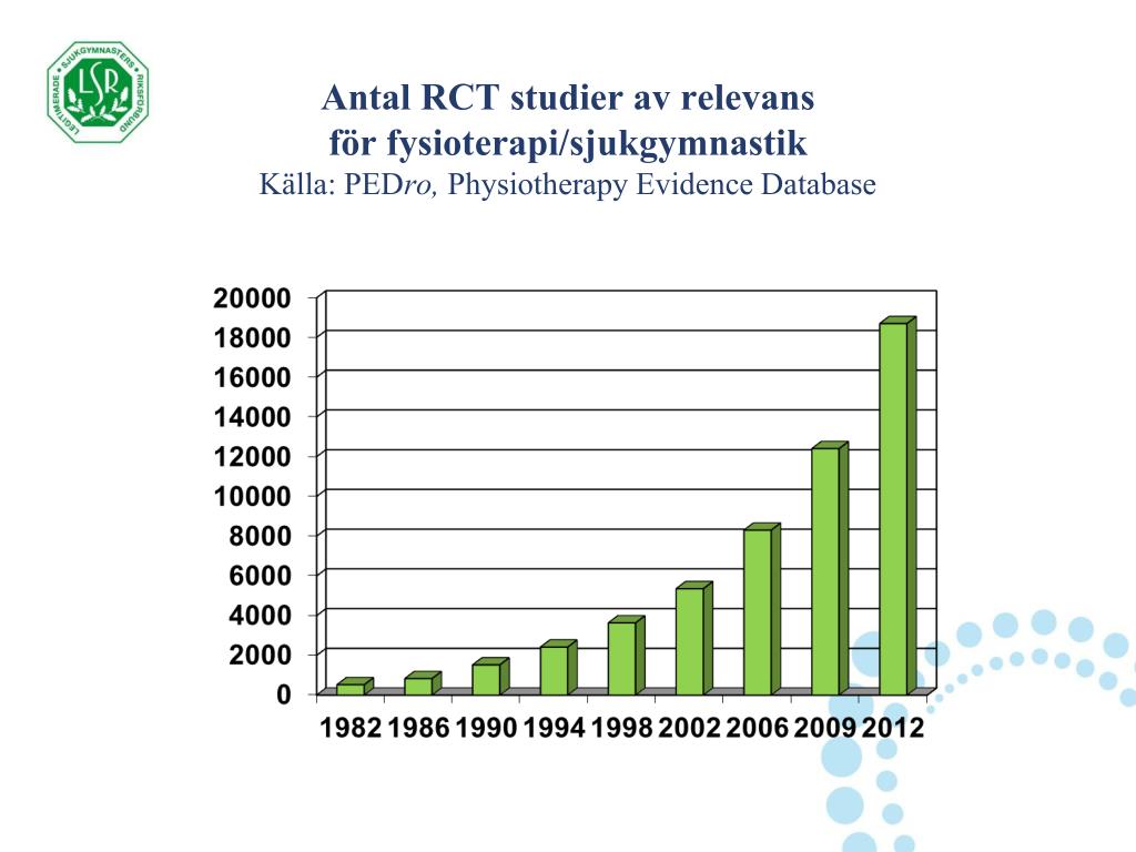 Antal RCT studier av relevans för fysioterapi/sjukgymnastik Källa: PEDro, Physiotherapy Evidence Database