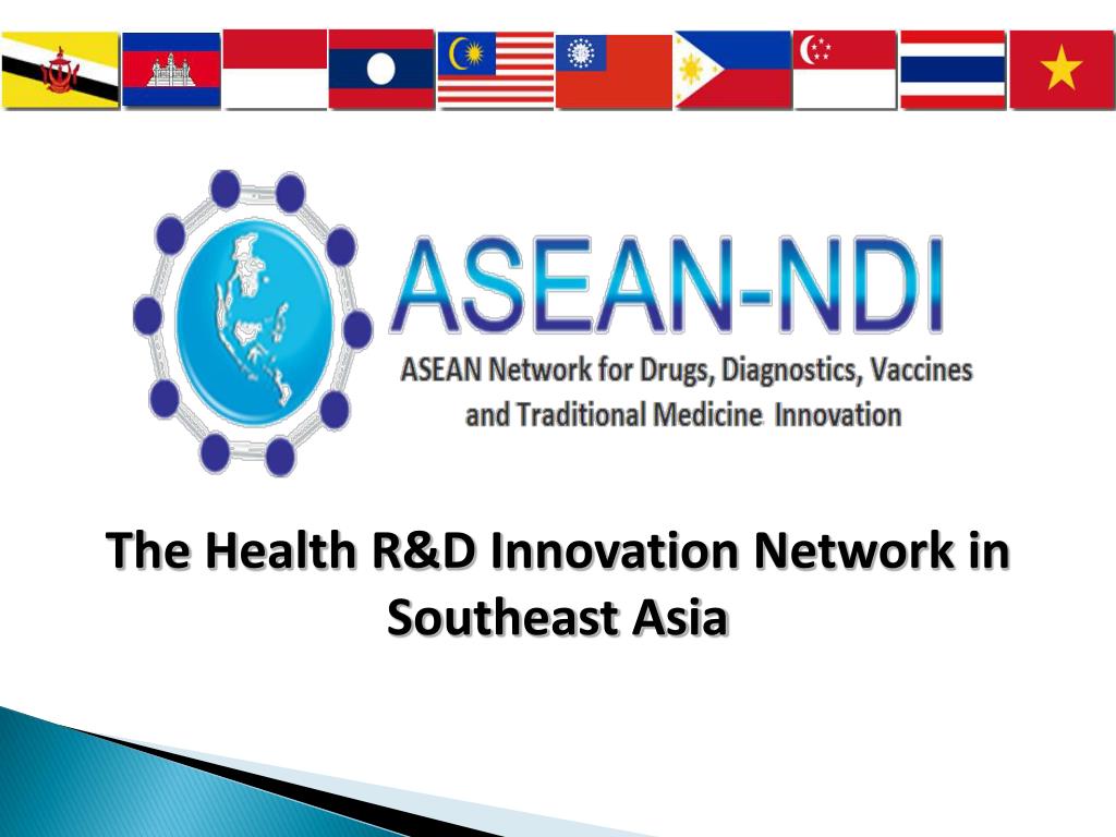 Objectives of ASEAN-NDI To establish the capabilities of the ASEAN member countries for drugs, diagnostics, vaccines, and traditional medicine innovation in the areas of infectious tropical diseases, non-communicable diseases, and accidents/traumas To identify gaps and opportunities in the ASEAN To create a database of institutions, networks, and initiatives with capacities for innovation To provide the template for the establishment/future directions of an Asian regional network for innovation in product R&D