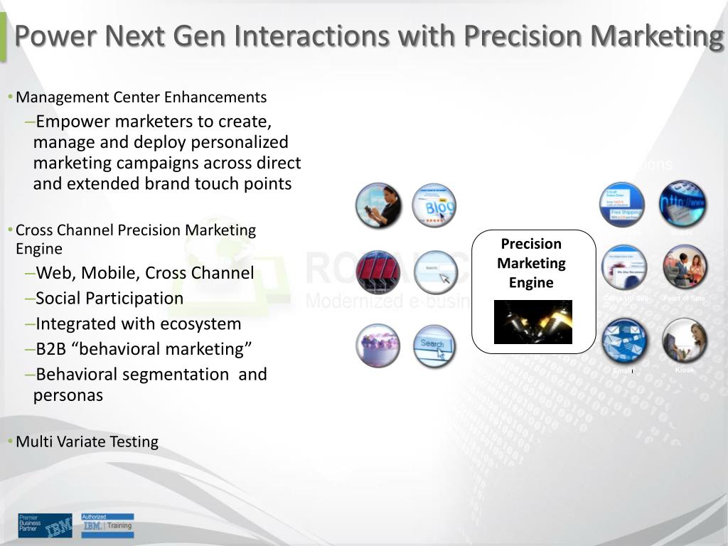 Management Center Enhancements Empower marketers to create, manage and deploy personalized marketing campaigns across direct and extended brand touch points Cross Channel Precision Marketing Engine Web, Mobile, Cross Channel Social Participation Integrated with ecosystem B2B “behavioral marketing” Behavioral segmentation and personas Multi Variate Testing Power Next Gen Interactions with Precision Marketing Precision Marketing Engine