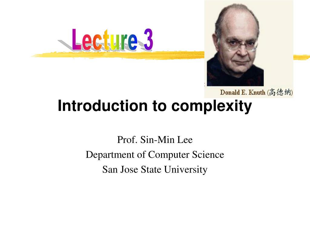 Lecture 3 Introduction to complexity Prof. Sin-Min Lee Department of Computer Science San Jose State University