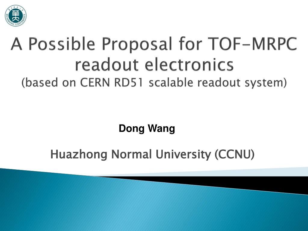 A Possible Proposal for TOF-MRPC readout electronics (based on CERN RD51 scalable readout system). Dong Wang. Huazhong Normal University (CCNU). Outline. Introduction to the Scalable Readout System MRPC Readout Specification Application of the SRS to CMB-MRPC Summary.
