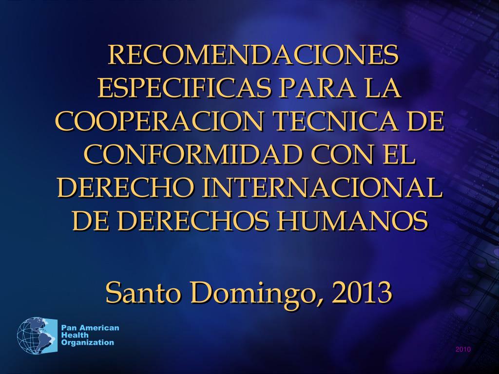 RECOMENDACIONES ESPECIFICAS PARA LA COOPERACION TECNICA DE CONFORMIDAD CON EL DERECHO INTERNACIONAL DE DERECHOS HUMANOS Santo Domingo, 2013