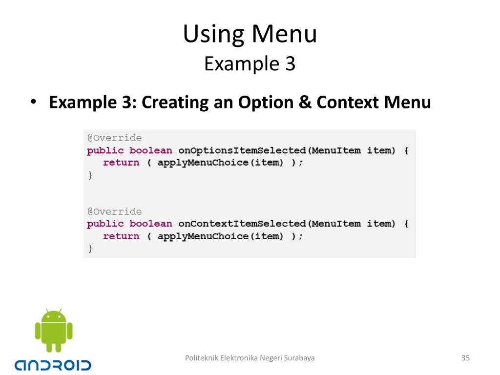 Using MenuExample 3 • Example 3: Creating an Option & Context Menu Politeknik Elektronika Negeri Surabaya
