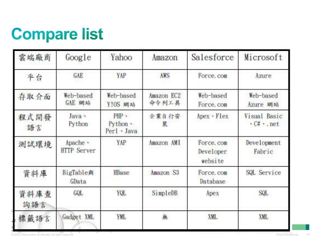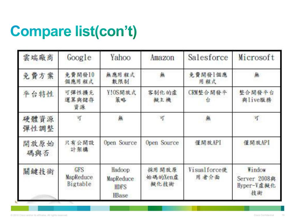 Additional question before adopt public cloud service • Sufficient internet access bandwidth? • Business to Cloud Service Provider bandwidth • Customer to Cloud Service Providerbandwidth • Will transform to other platform?