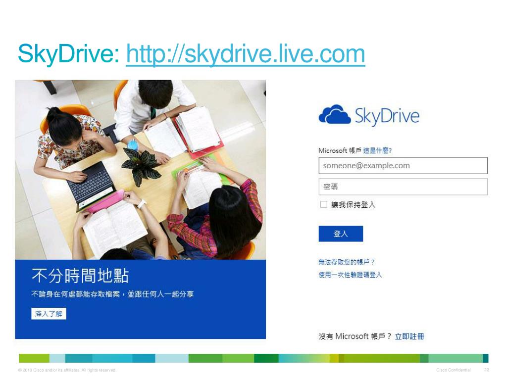 Windows Azure • http://www.microsoft.com/taiwan/windowsazure/ • Require: • Microsoft Account • Phone Certification • Credit Card