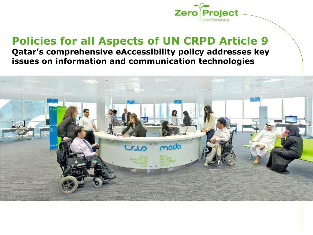 Policies for all Aspects of UN CRPD Article 9 Qatar’s comprehensiveeAccessibilitypolicyaddresses key issues on information and communication technologies